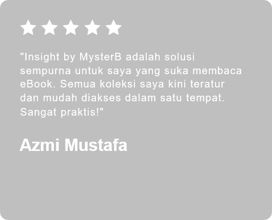 Dengan Insight by MysterB, Anda dapat mengelola dan menikmati koleksi buku tanpa repot. Semua ada di genggaman Anda, kapan saja dan di mana saja.